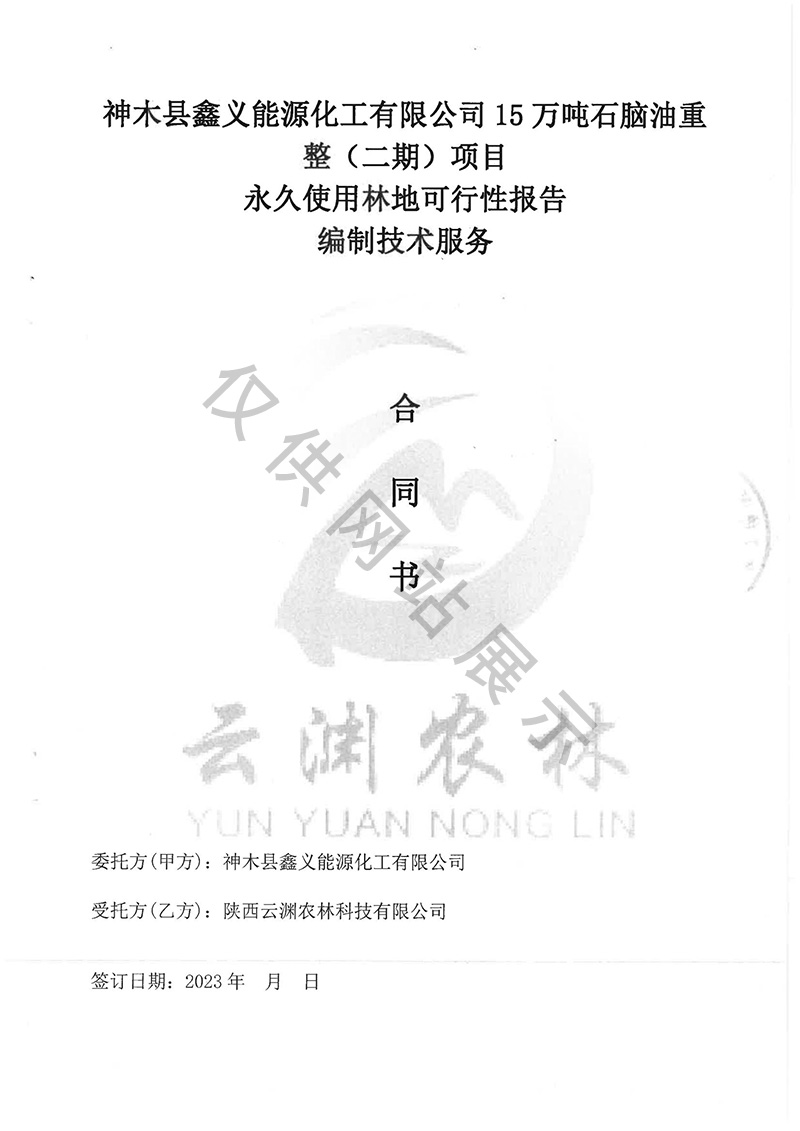 神木县鑫义能源化工有限公司15万吨石脑油重整(二期)项目**使用林可行性报告编制技术服务