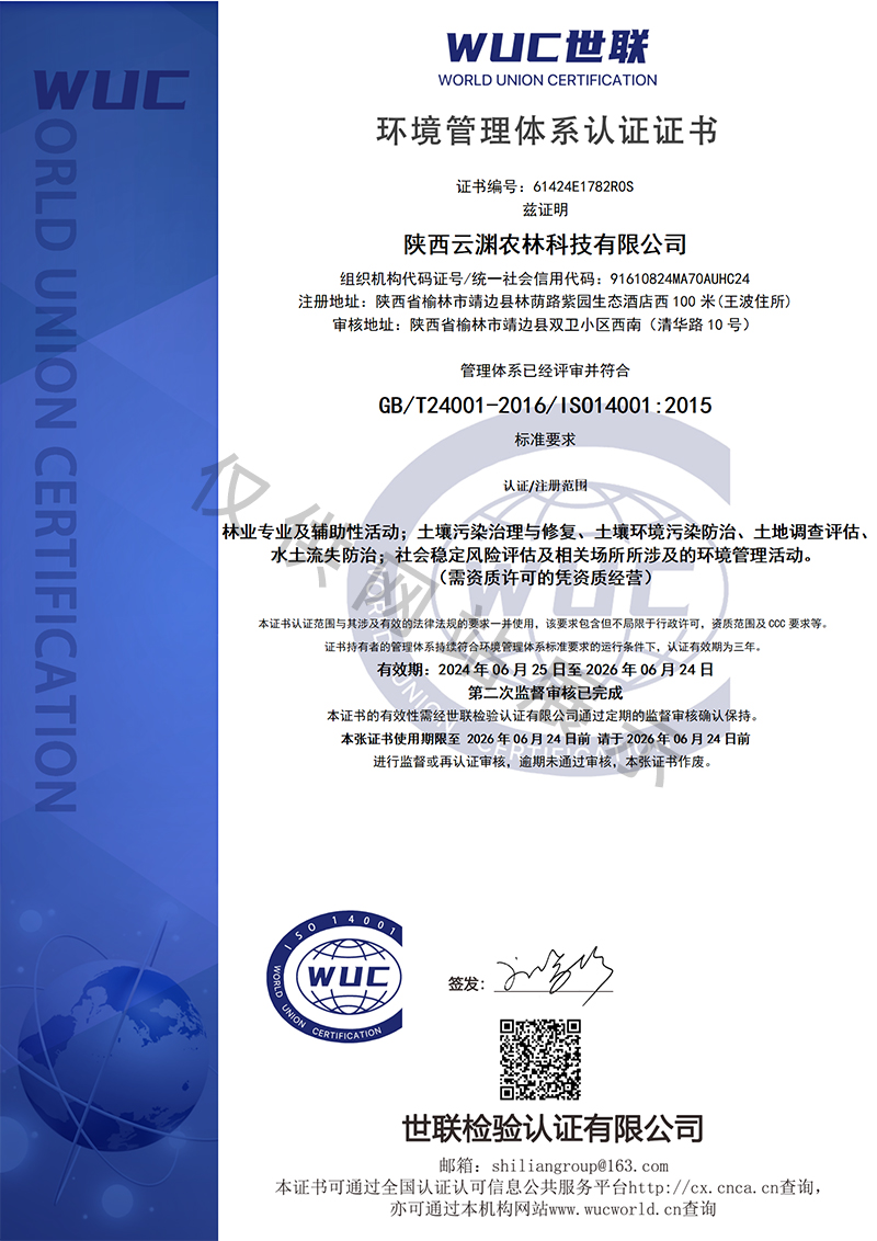 陕西云渊农林科技有限公司是一家具有独立法人资质的农林科技型企业,注册资金 500万元,成立于 2019年 4 月。公司办公地址(法人自有产权):陕西省榆林市靖边县双卫小区西南(门牌:清华路10号)。【陕西云渊农林科技有限公司】
