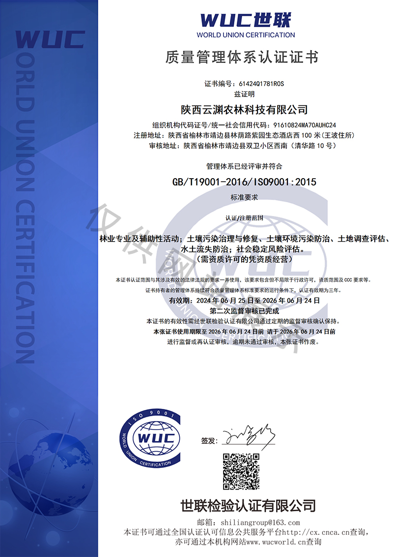 陕西云渊农林科技有限公司是一家具有独立法人资质的农林科技型企业,注册资金 500万元,成立于 2019年 4 月。公司办公地址(法人自有产权):陕西省榆林市靖边县双卫小区西南(门牌:清华路10号)。【陕西云渊农林科技有限公司】